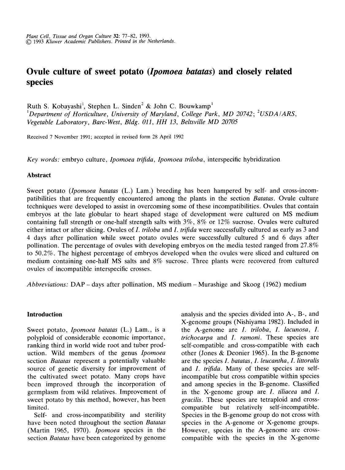 Ovule culture of sweet potato (<Emphasis Type="Italic">Ipomoea batatas<Emphasis>) and closely related species by Unknown