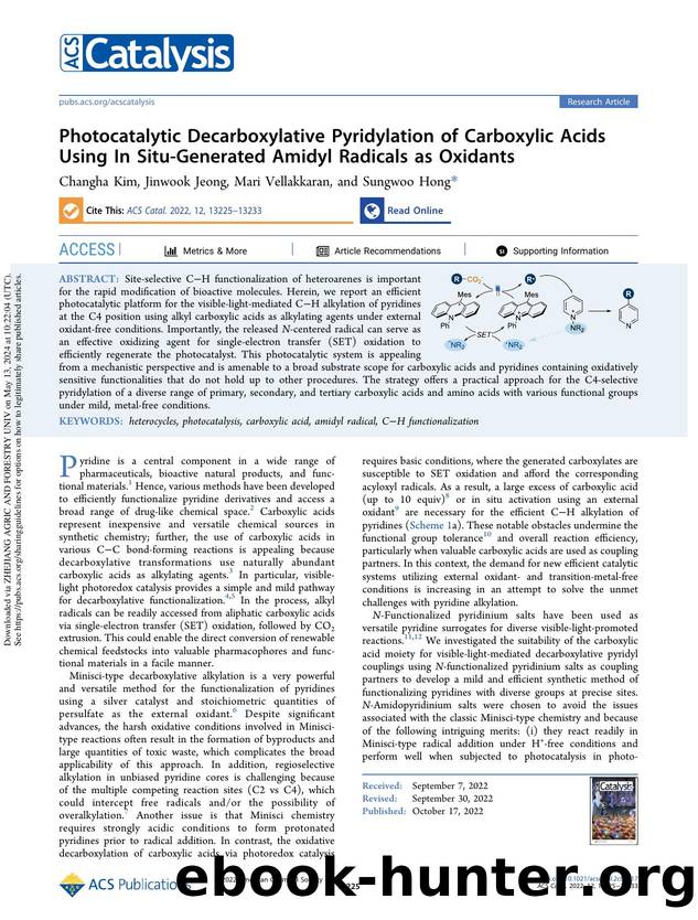 Photocatalytic Decarboxylative Pyridylation of Carboxylic Acids Using In Situ-Generated Amidyl Radicals as Oxidants by Changha Kim Jinwook Jeong Mari Vellakkaran & Sungwoo Hong
