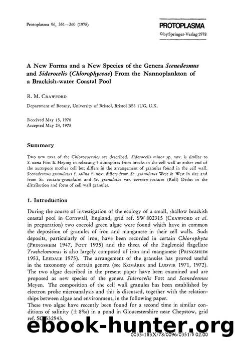 A new forma and a new species of the genera <Emphasis Type="Italic">Scenedesmus <Emphasis> and <Emphasis Type="Italic">Siderocelis (Chlorophyceae) <Emphasis> from the nannoplankton by Unknown