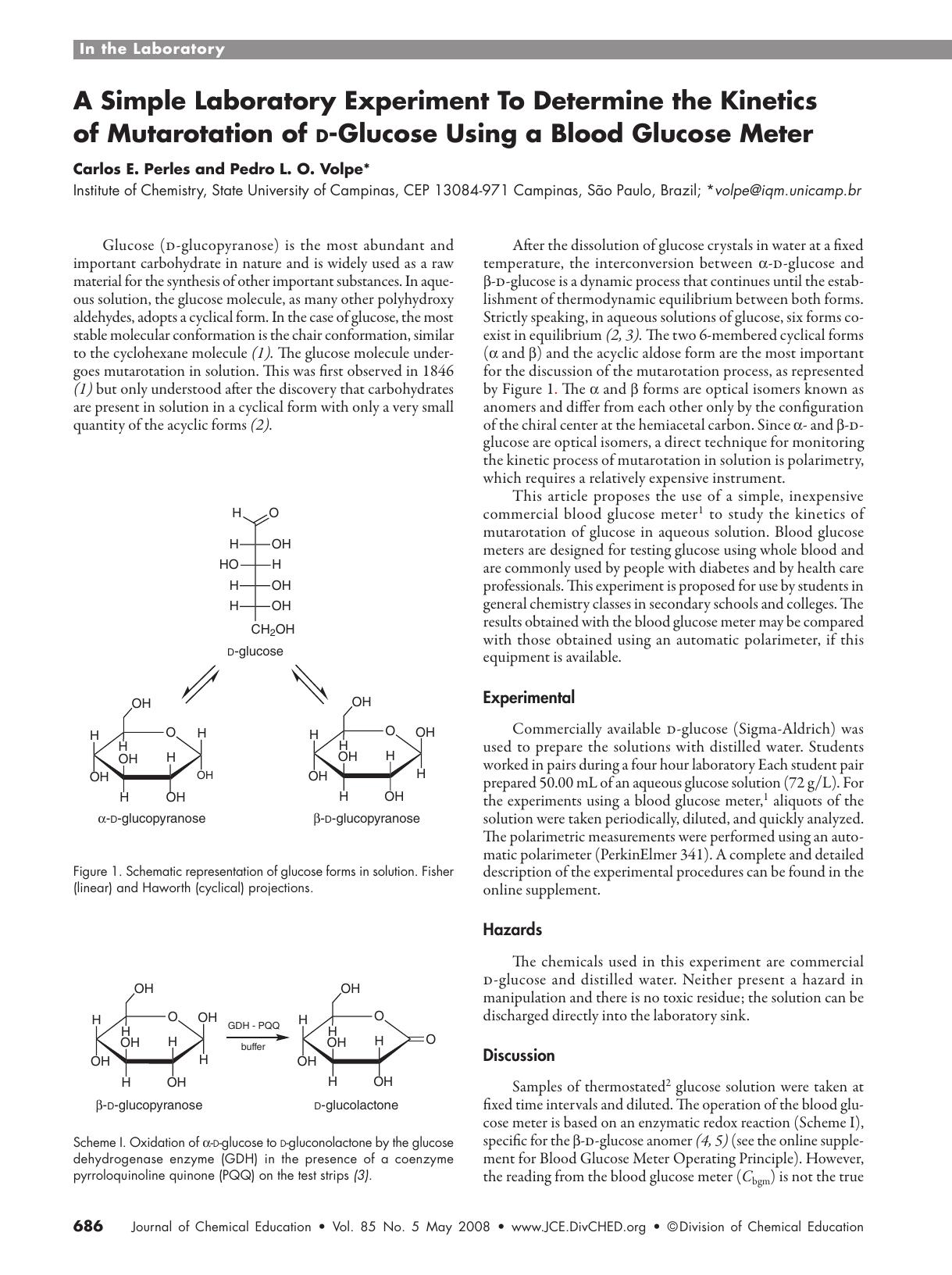 A Simple Laboratory Experiment To Determine the Kinetics of Mutarotation of d-Glucose Using a Blood Glucose Meter by Carlos E. Perles and Pedro L. O. Volpe