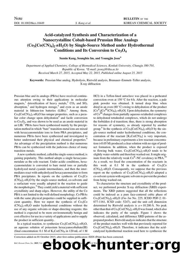 Acid-catalyzed Synthesis and Characterization of a Nanocrystalline Cobalt-based Prussian Blue Analogs (Co3[Co(CN)6]2.nH2O) by Single-Source Method under Hydrothermal Conditions and by Unknown