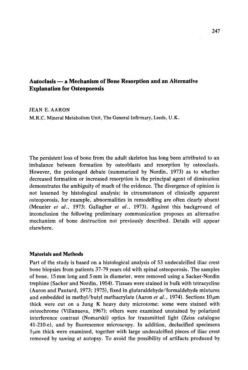Autoclasis—a mechanism of bone resorption and an alternative explanation for osteoporosis by Unknown