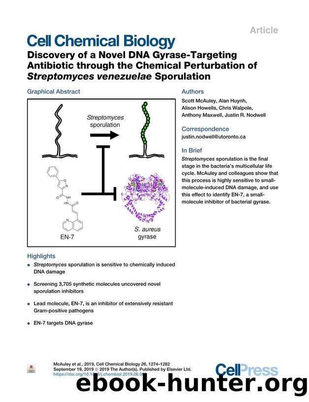 Discovery of a Novel DNA Gyrase-Targeting Antibiotic through the Chemical Perturbation of Streptomyces venezuelae Sporulation by Scott McAuley & Alan Huynh & Alison Howells & Chris Walpole & Anthony Maxwell & Justin R. Nodwell