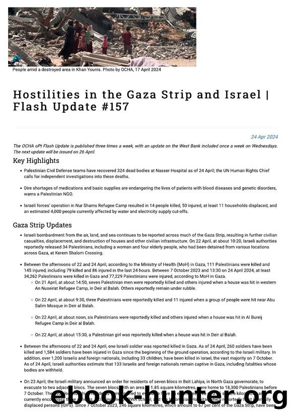 Hostilities in the Gaza Strip and Israel | Flash Update #157 | United Nations Office for the Coordination of Humanitarian Affairs - occupied Palestinian territory by USER