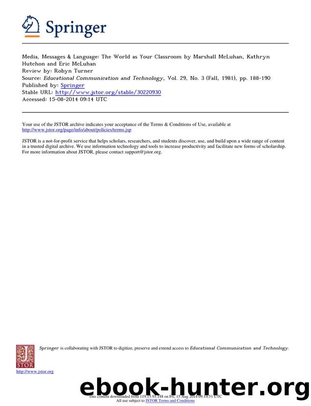 Media, Messages & Language The World as Your Classroom by Marshall McLuhan, KathrynHutchon and Eric McLuhan Review by Robyn Turner by Unknown