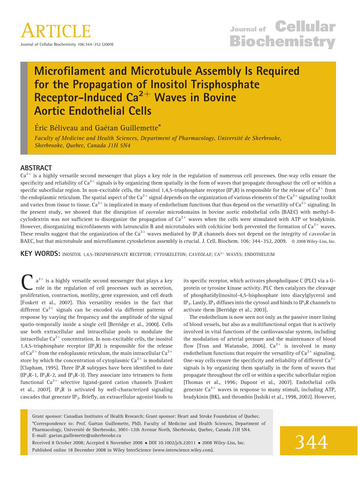 Microfilament and microtubule assembly is required for the propagation of inositol trisphosphate receptor-induced Ca2+ waves in bovine aortic endothelial cells by Unknown