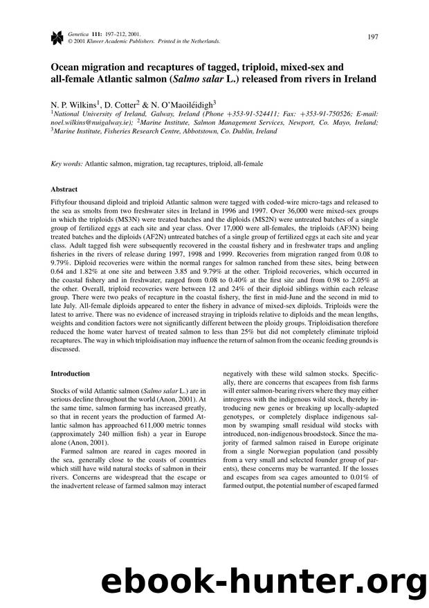 Ocean migration and recaptures of tagged, triploid, mixed-sex and all-female Atlantic salmon (<Emphasis Type="Italic">Salmo salar<Emphasis> L.) released from rivers in Ireland by Unknown