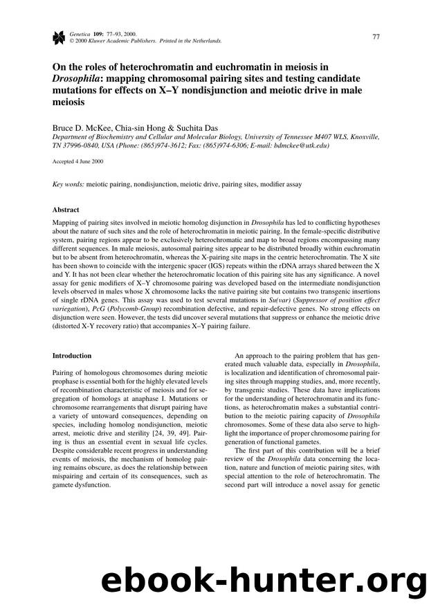 On the Roles of Heterochromatin and Euchromatin in Meiosis in Drosophila: Mapping Chromosomal Pairing Sites and Testing Candidate Mutations for Effects on X–Y Nondisjunction by Unknown