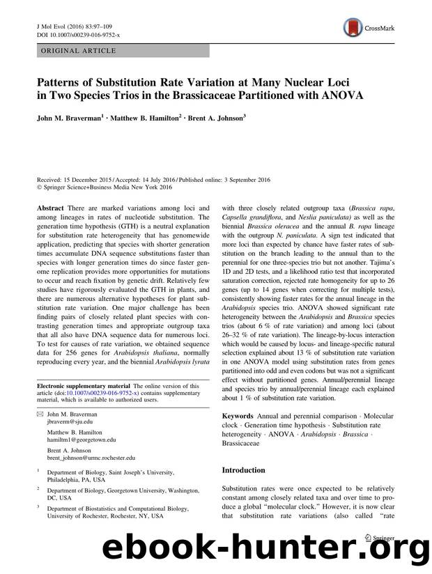 Patterns of Substitution Rate Variation at Many Nuclear Loci in Two Species Trios in the Brassicaceae Partitioned with ANOVA by John M. Braverman & Matthew B. Hamilton & Brent A. Johnson