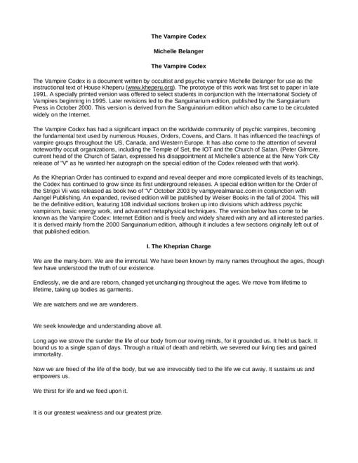 * 7. Betrayal “The Archon system is one of the oldest ruling principles of the predatory society. The oldest vampire will be named Archon; powerful and wise above all others. ...