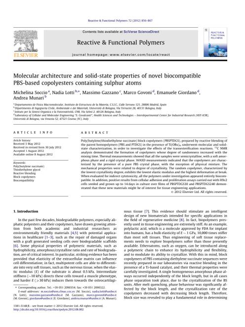 pdf | | 2012-09-14 | Author:Michelina Soccio & Nadia Lotti & Massimo Gazzano & Marco Govoni & Emanuele Giordano & Andrea Munari