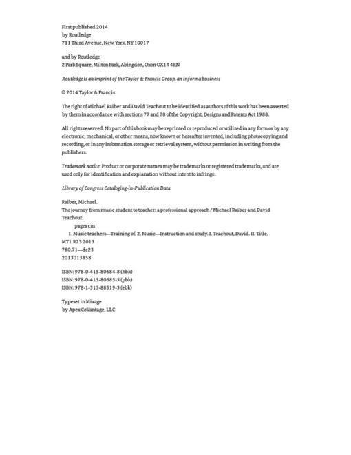 The Journey from Music Student to Teacher: A Professional Approach by Michael Raiber; David Teachout
