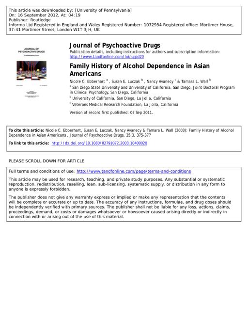 pdf | | | Author:Nicole C. Ebberhart a , Susan E. Luczak b , Nancy Avanecy c & Tamara L. Wall b [email protected]