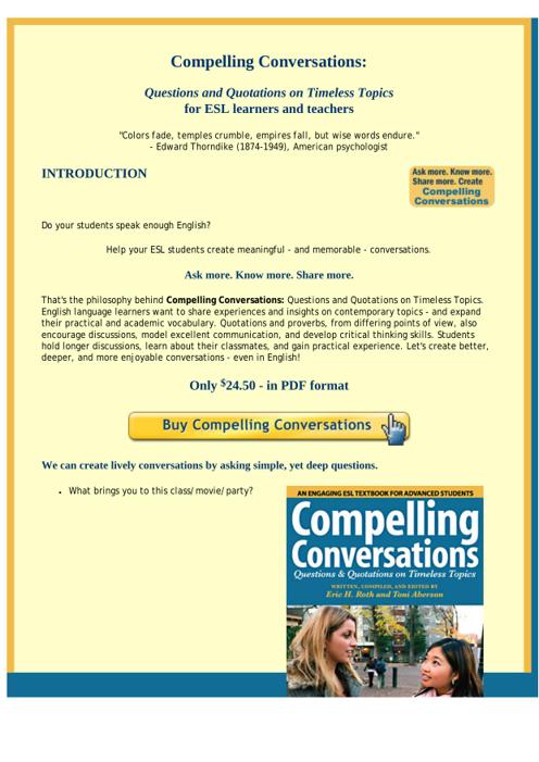 Compelling Conversations For English Language Learners And Teachers. by Best of Kuszter's Collection