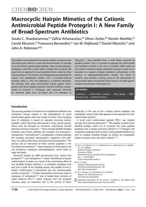 A New Family of [beta]-Hairpin Mimetics Based on a Trypsin Inhibitor from Sunflower Seeds by Unknown