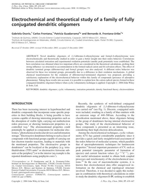Electrochemical and theoretical study of a family of fully conjugated dendritic oligomers by Unknown
