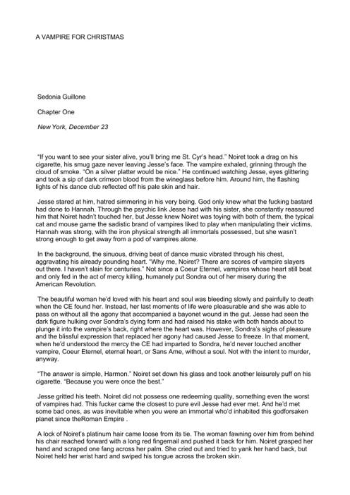 Chapter 8 Darkness still claimed the streets of New Harmony. Angel clung to him for a moment, the heat of her body making the honeysuckle fragrance of her much more ...