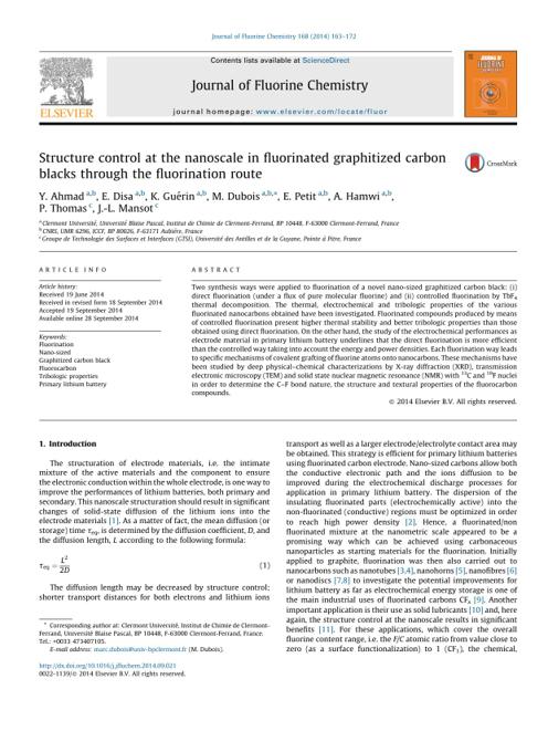 pdf | | 2014-11-17 | Author:Y. Ahmad & E. Disa & K. Guérin & M. Dubois & E. Petit & A. Hamwi & P. Thomas & J.-L. Mansot
