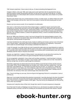 "The other vampires," she whispered. "Yes." And then I was telling her all about them, about my search so long ago to find the others, thinking that if I only ...