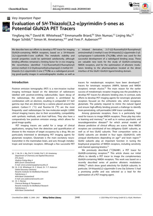 Evaluation of 5HâThiazolo[3,2âα]pyrimidinâ5âones as Potential GluN2A PET Tracers by Unknown