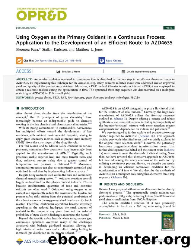 Using Oxygen as the Primary Oxidant in a Continuous Process: Application to the Development of an Efficient Route to AZD4635 by Eleonora Fava Staffan Karlsson and Matthew L. Jones